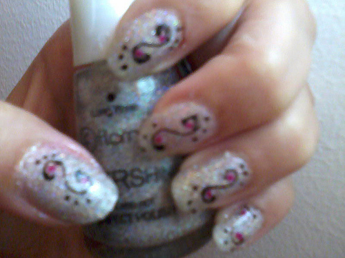 Eu gostei muito desta técnica, já que as mãos me tremem quando se trata de fazer desenhos directamente nas unhas, o que é chato e se torna aborrecido.